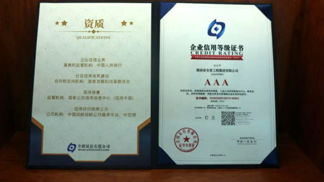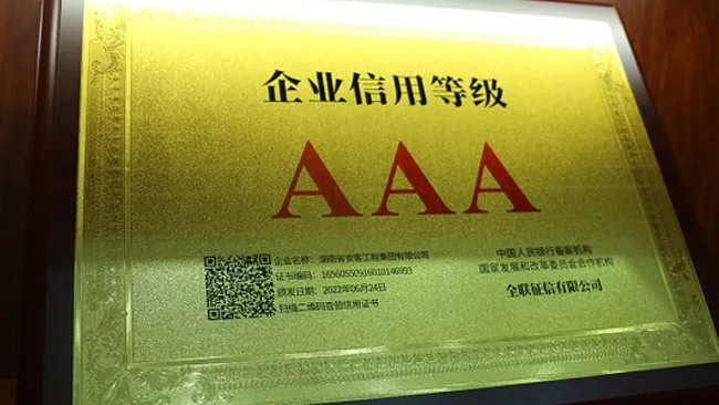 在今年的全國征信評定活動(dòng)中,湖南省安客工程集團有限公司又一次脫穎而出,再度榮冠成為2022年度“企業(yè)信用等級3A”企業(yè),為集團品質(zhì)品牌升級邁向新的高度,凝聚更多力量,注入更多動(dòng)能。